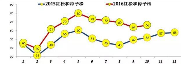 1-10月紅松和樟子松進口總量